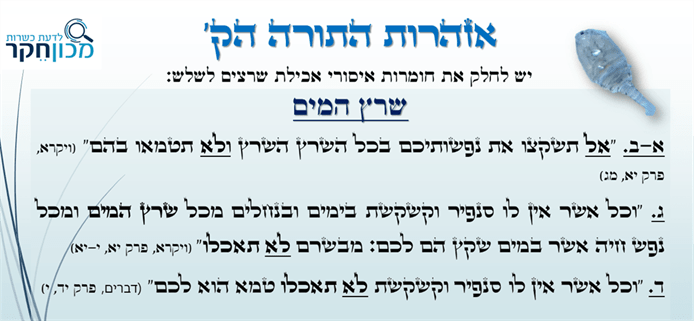 3. "מכל שרץ המים וכו' מבשרם לא תאכלו"