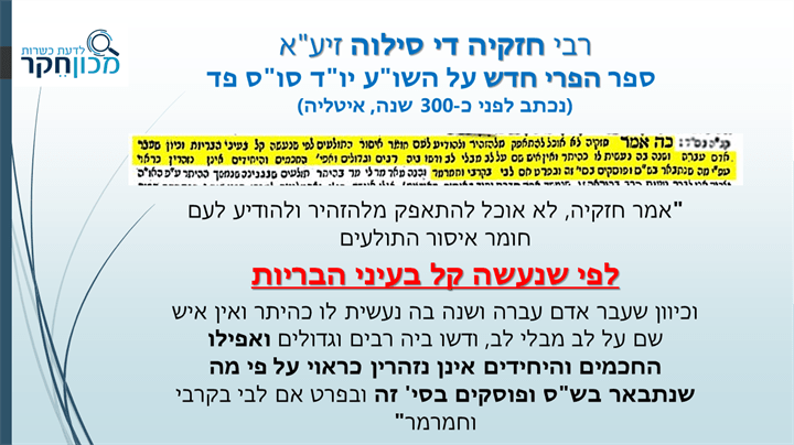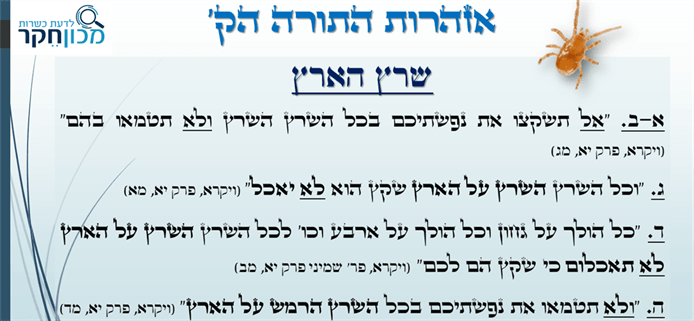 בדבריו הזהיר כקודמיו על כל גידולי הקרקע מאחר ובהם קיימים שרצים רבים ומאוד קשה לבודקם.