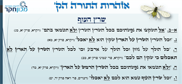 - "וכל השרץ השרץ על הארץ שקץ הוא לא יאכל" (ויקרא, פר' שמיני פרק יא, מא)