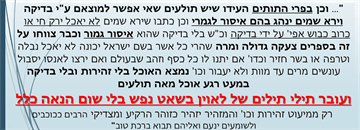 וכאן מוסיף דבר חשוב "וצריך האדם ליזהר בתוספת זהירות וזריזות וכו' ומה גם בזמנים אלו שנזהם האוויר והארצות כולן יחד ואין לך גידולי קרקע שאין בהם מהשיקוץ"